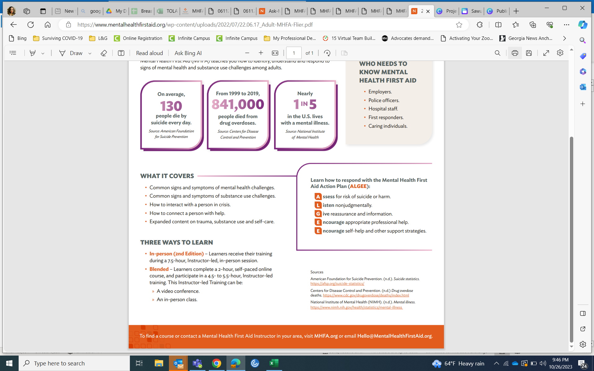 Our mental well-being is just as important as our physical well-being. But the reality is 1 out of 5 adults is challenged by mental illnesses. MHFA can help.